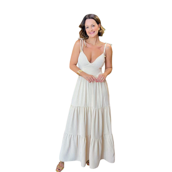 Vestido maxi de verano elegante personalizable para mujer Casual moda patrón de rayas sólidas transpirable tirantes finos sin mangas Natural