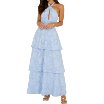 שמלה אלגנטית מקסי מזדמנים מזדמנים שמלת מקסי אלסטי מגב חתוך ללא שרוולים חלול מוצק עבור חופשת הקיץ