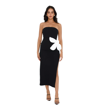 Tùy Chỉnh Của Phụ Nữ Strapless Maxi Dress Thanh Lịch Giản Dị Đảng Mặc Với Hoa-Tôn Tạo Dây Kéo Trang Trí Tương Phản Màu Sắc Khe